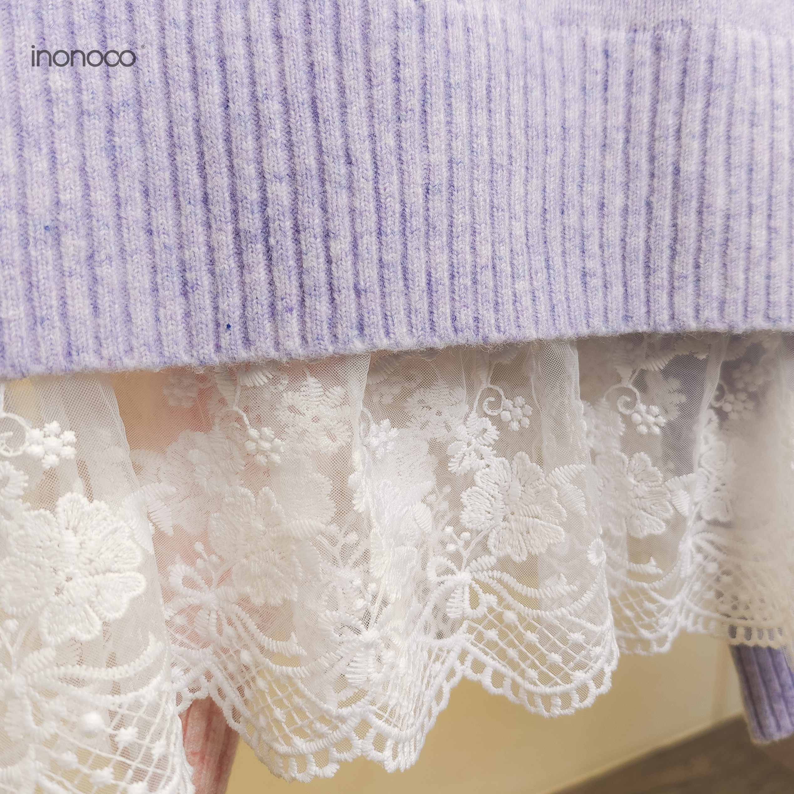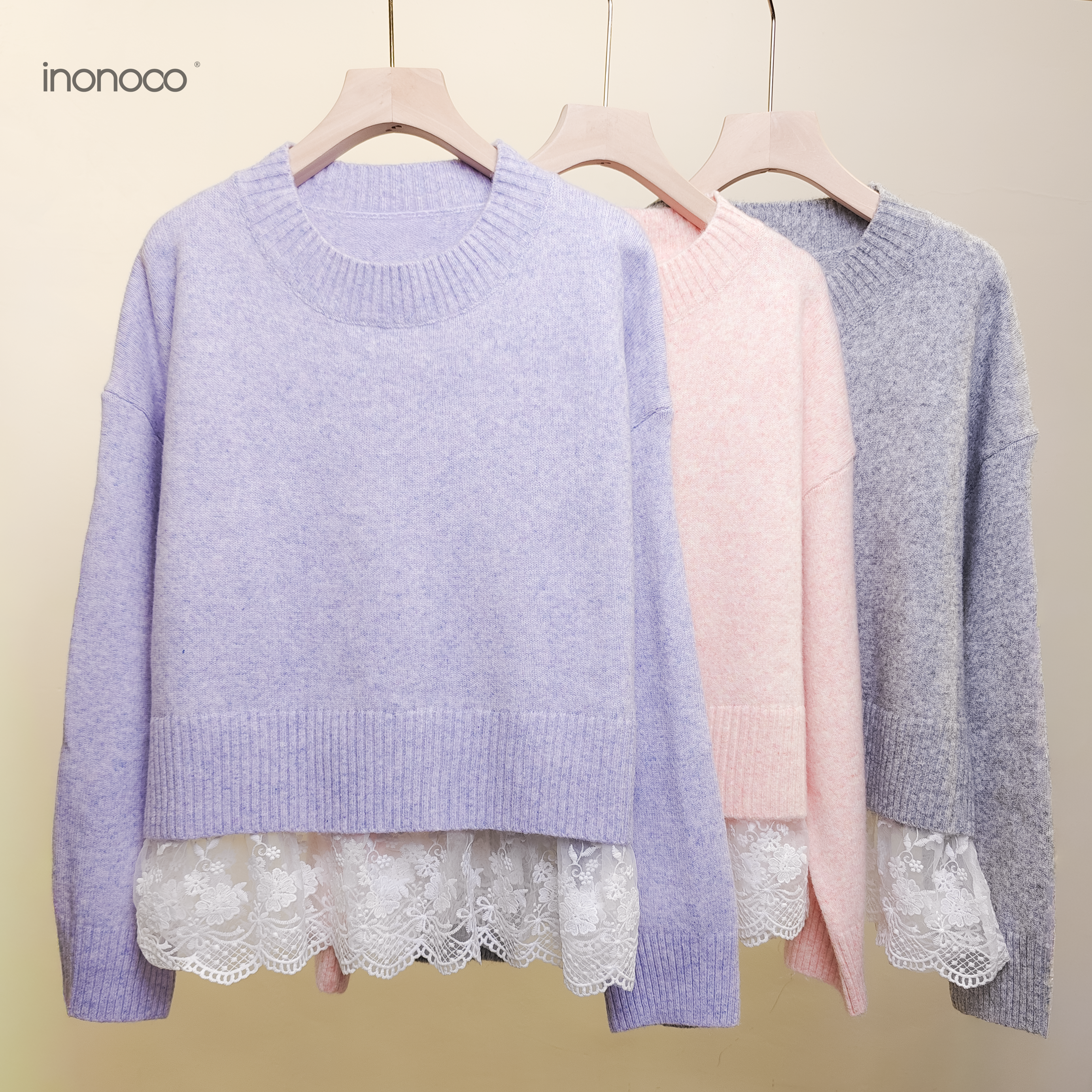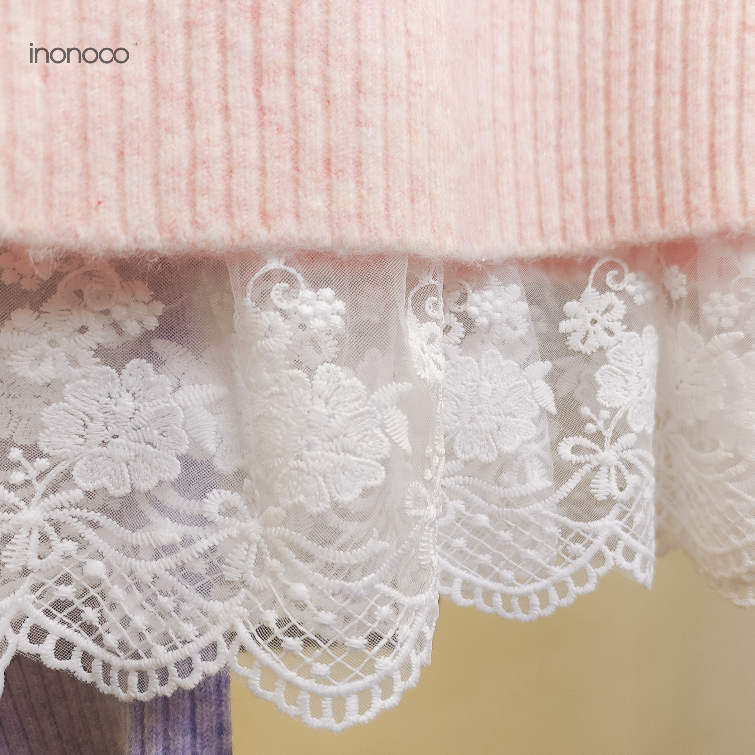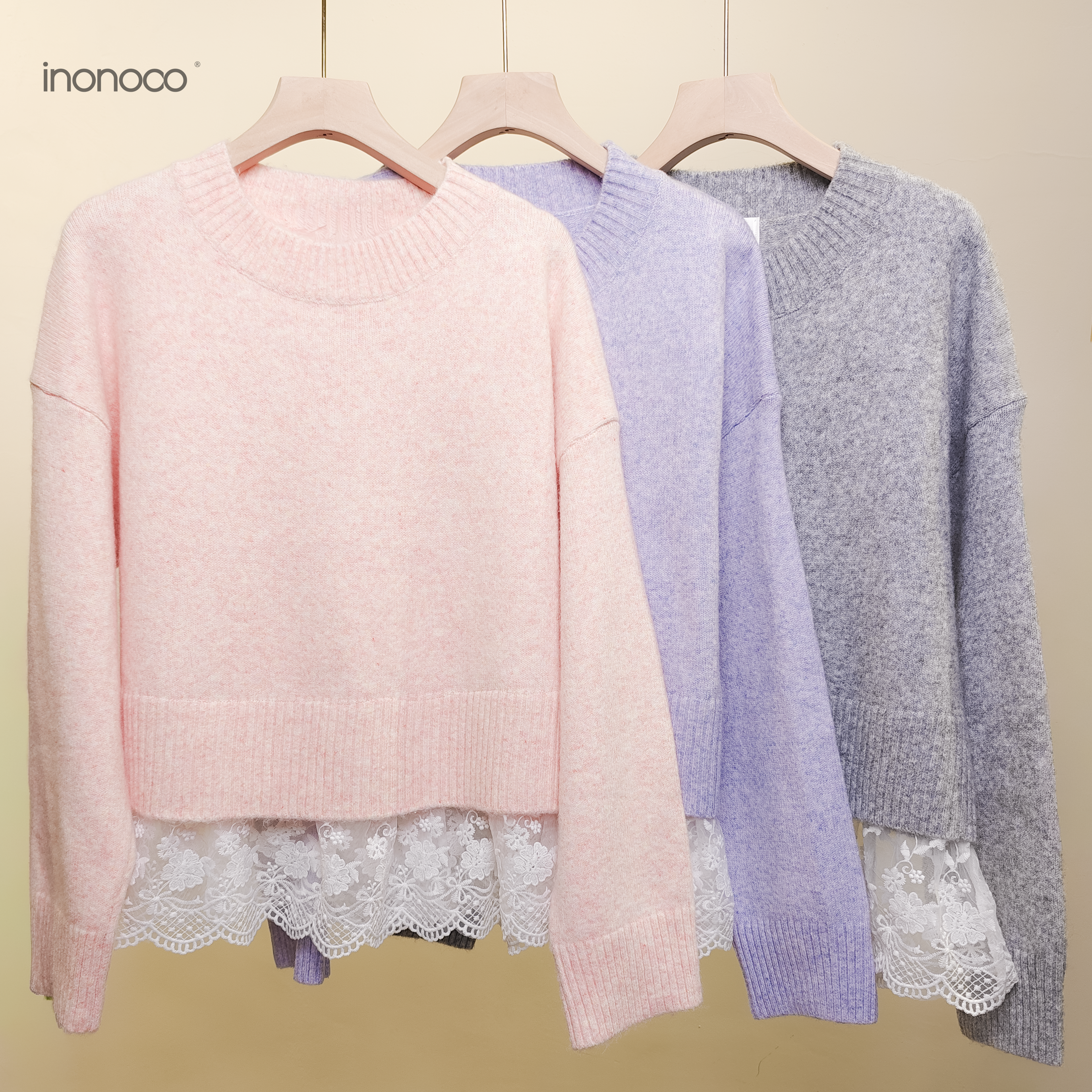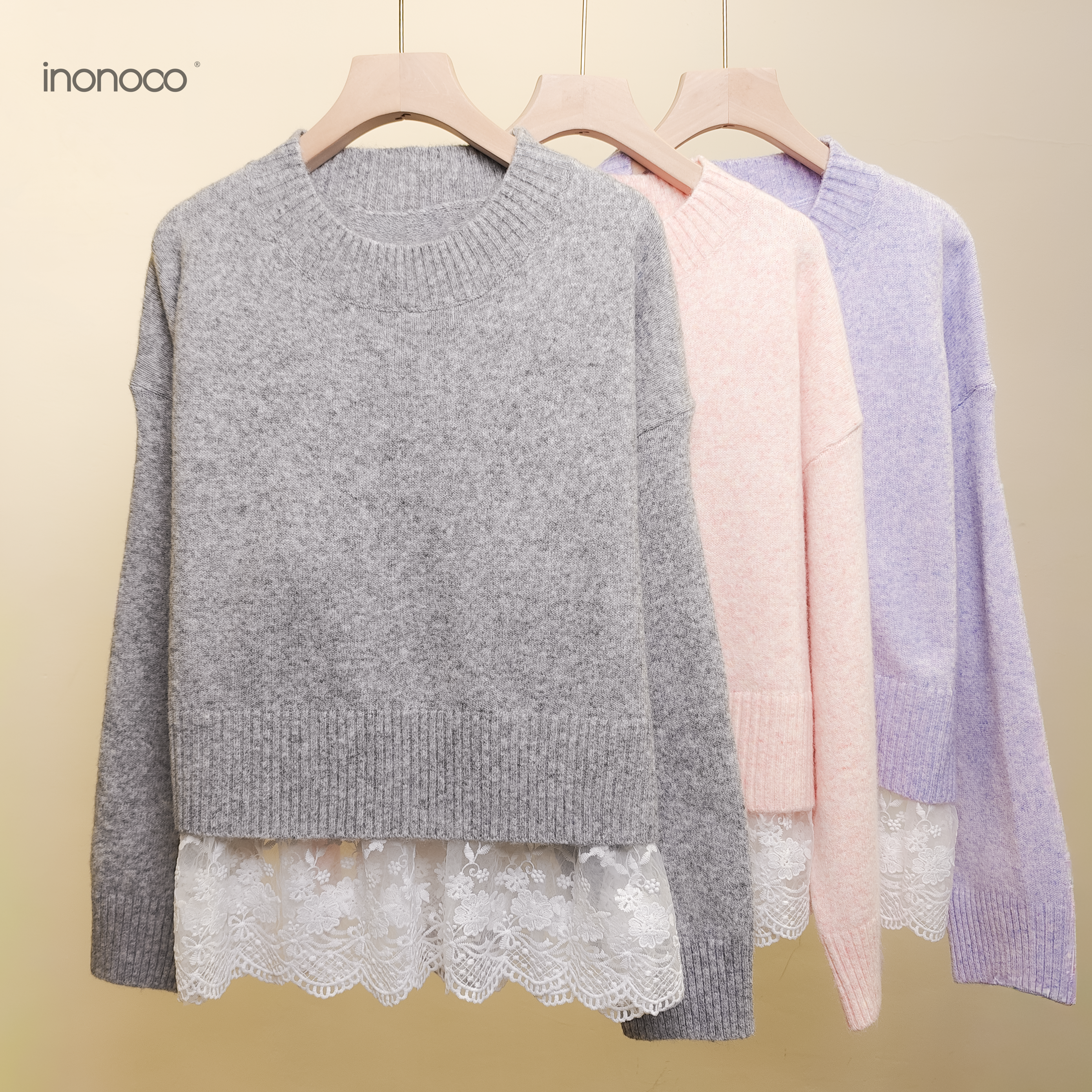 柔軟混色冷織精緻網紗勾花下擺上衣 #25924
