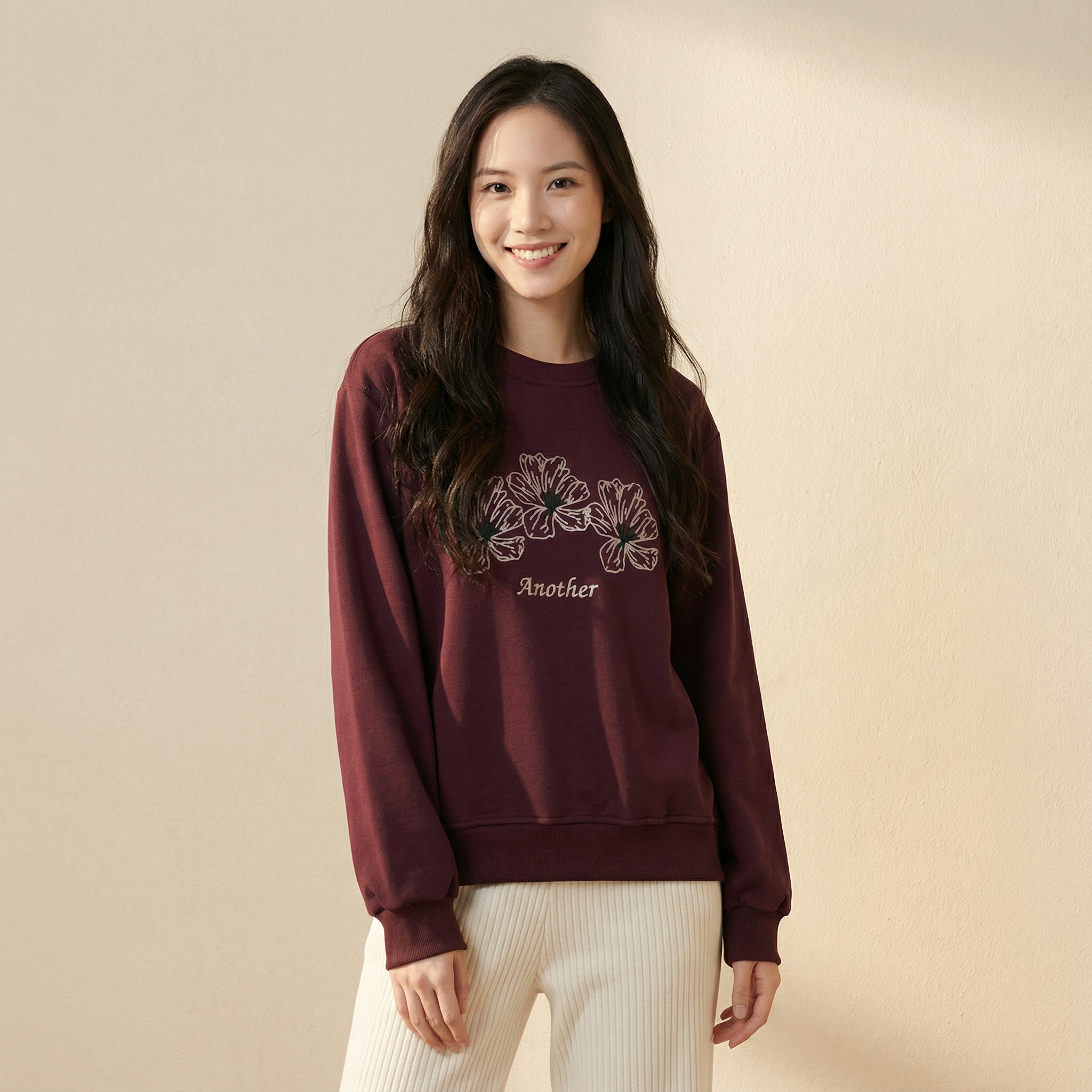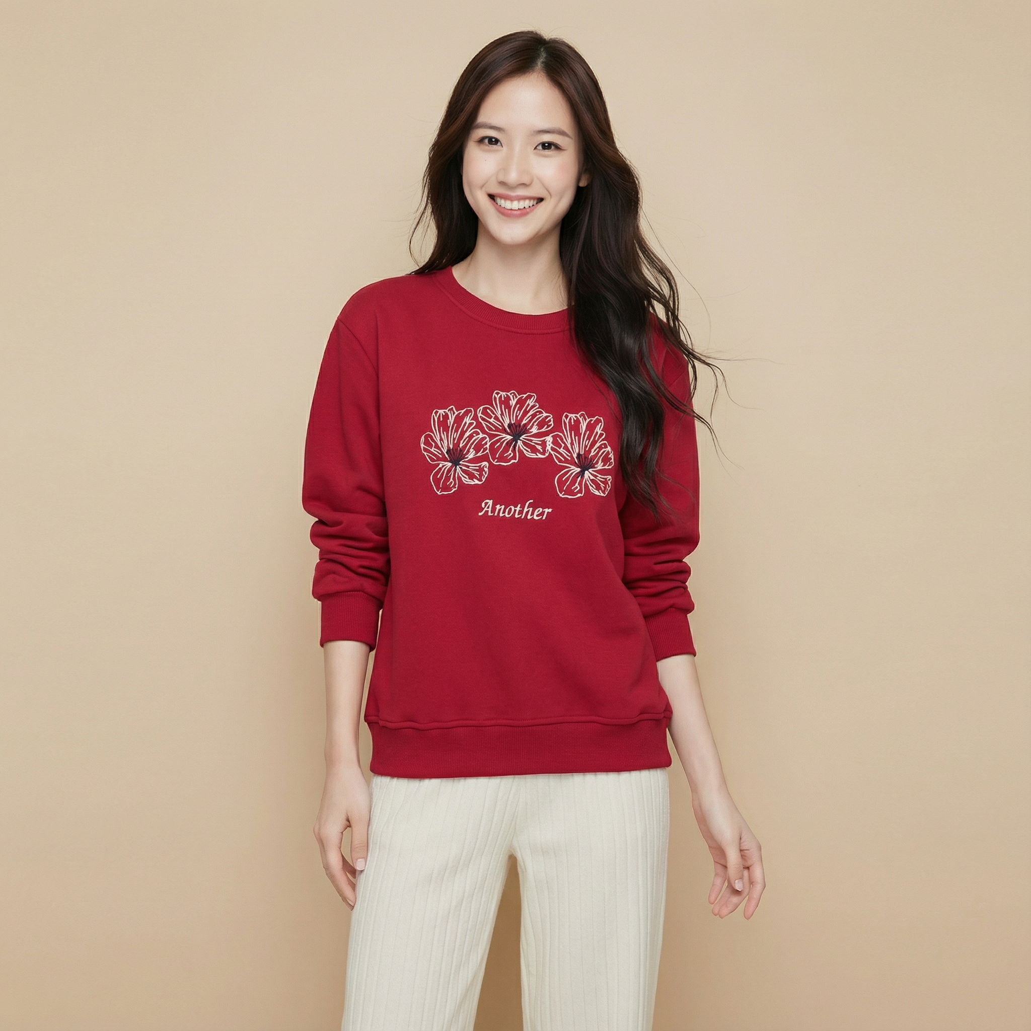 植絨花朵圖案棉質衛衣 #26963