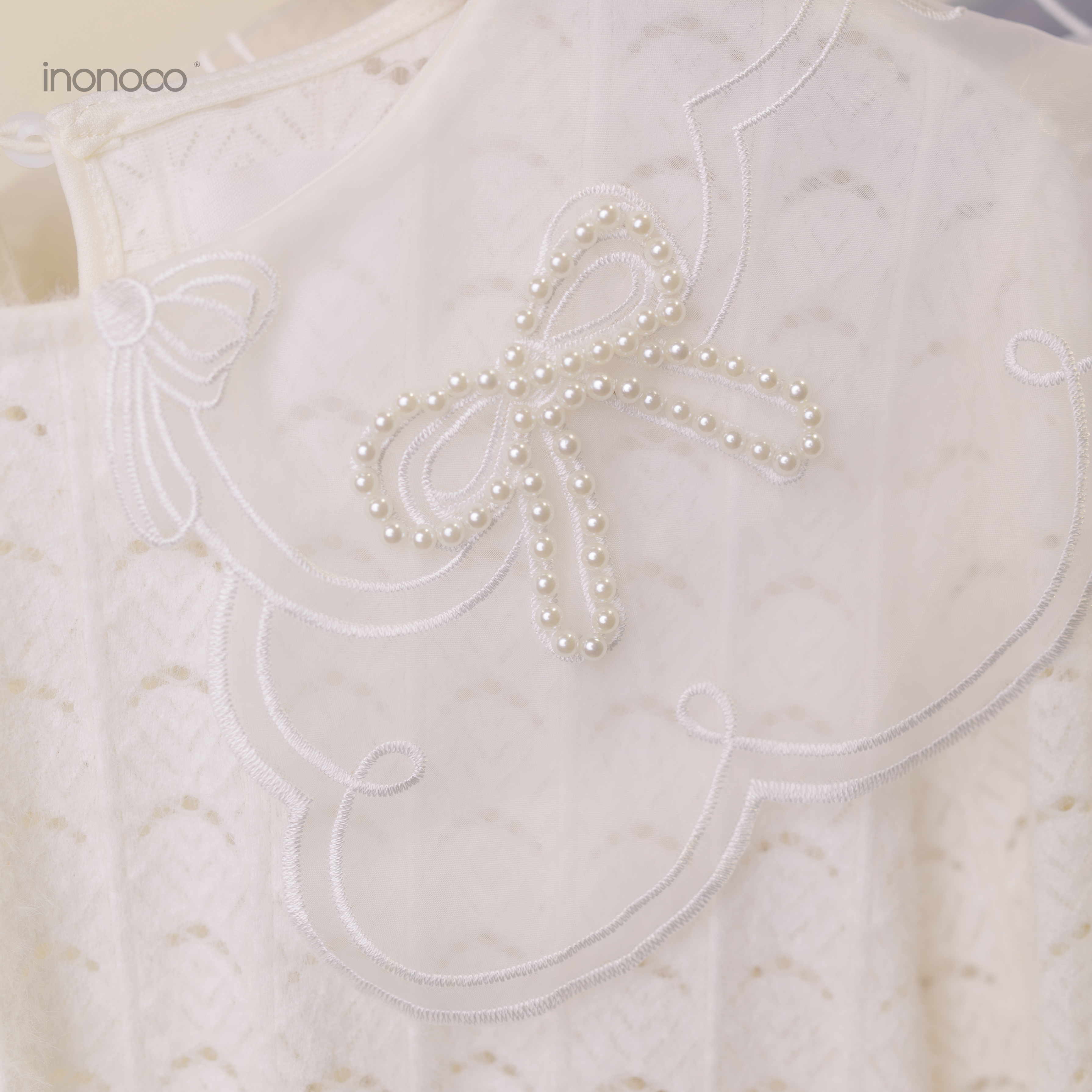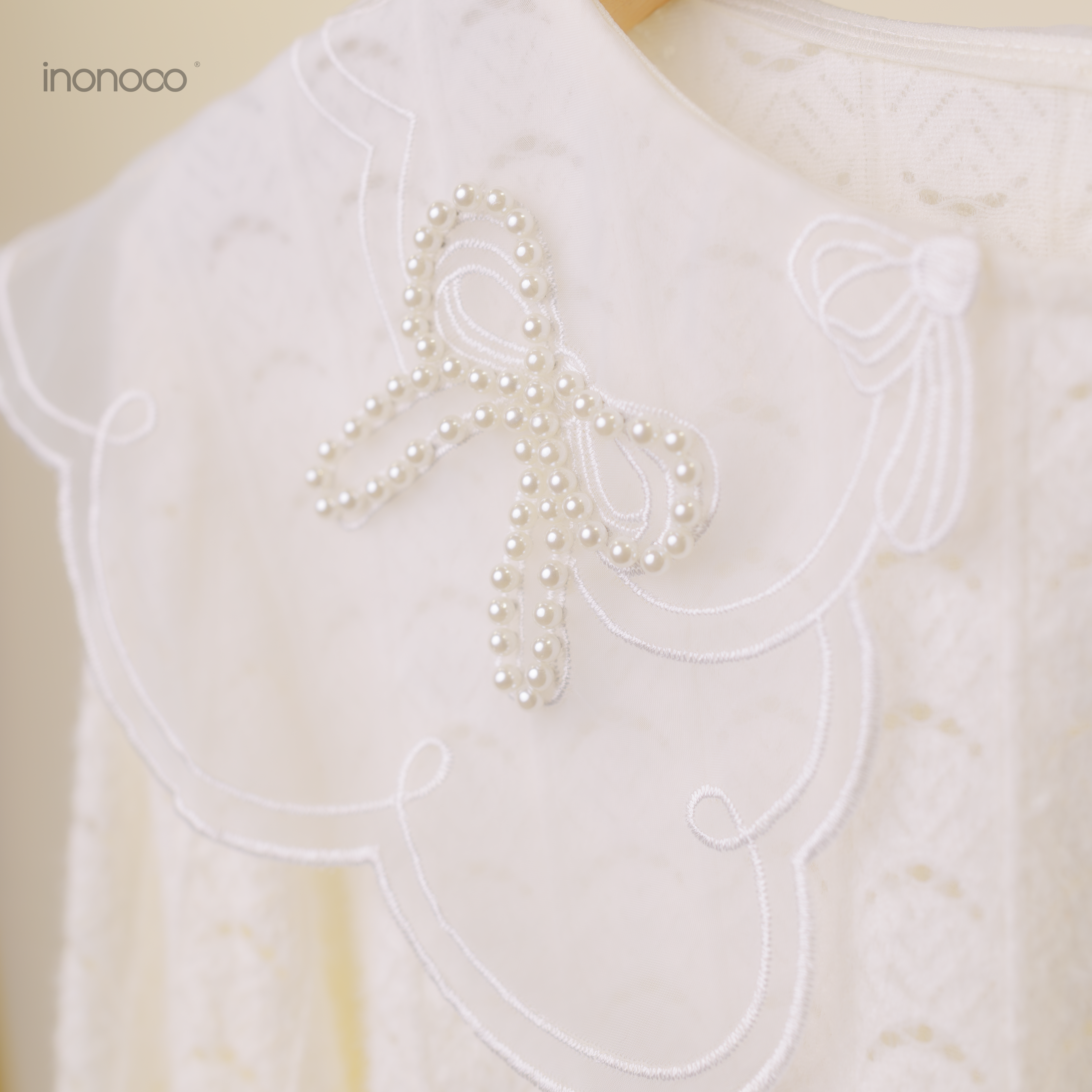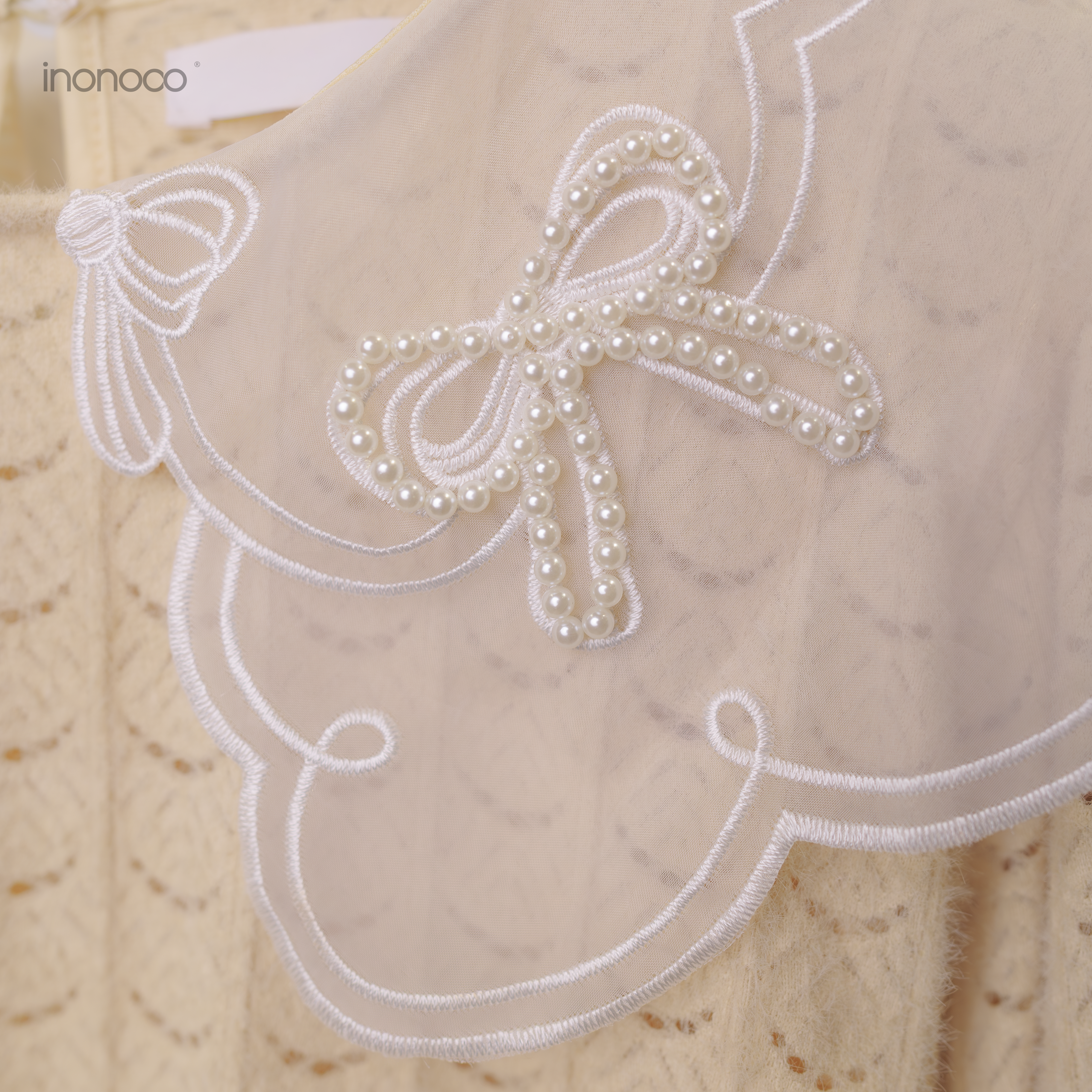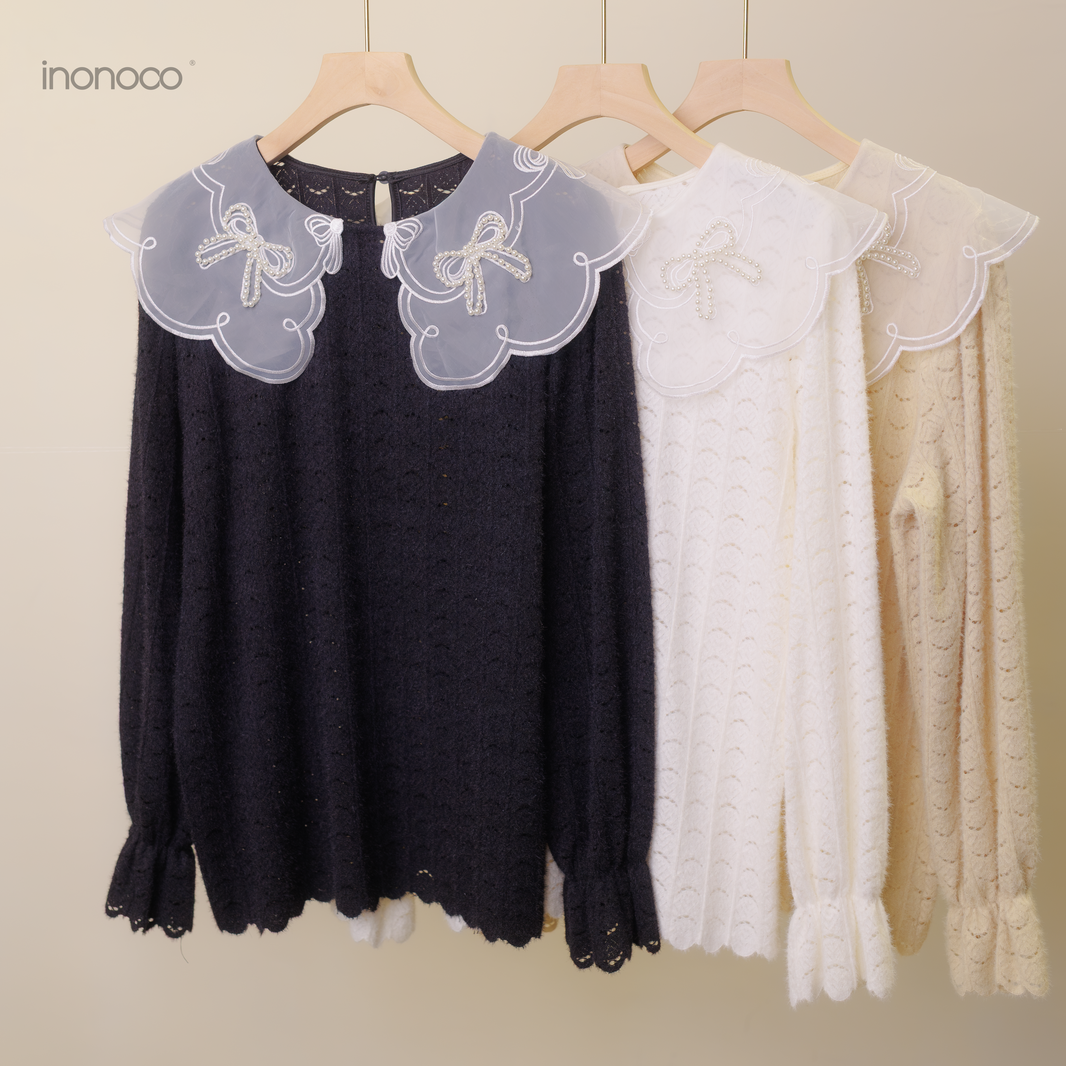釘珠刺繡領直紋絨面蕾絲上衣 #25925