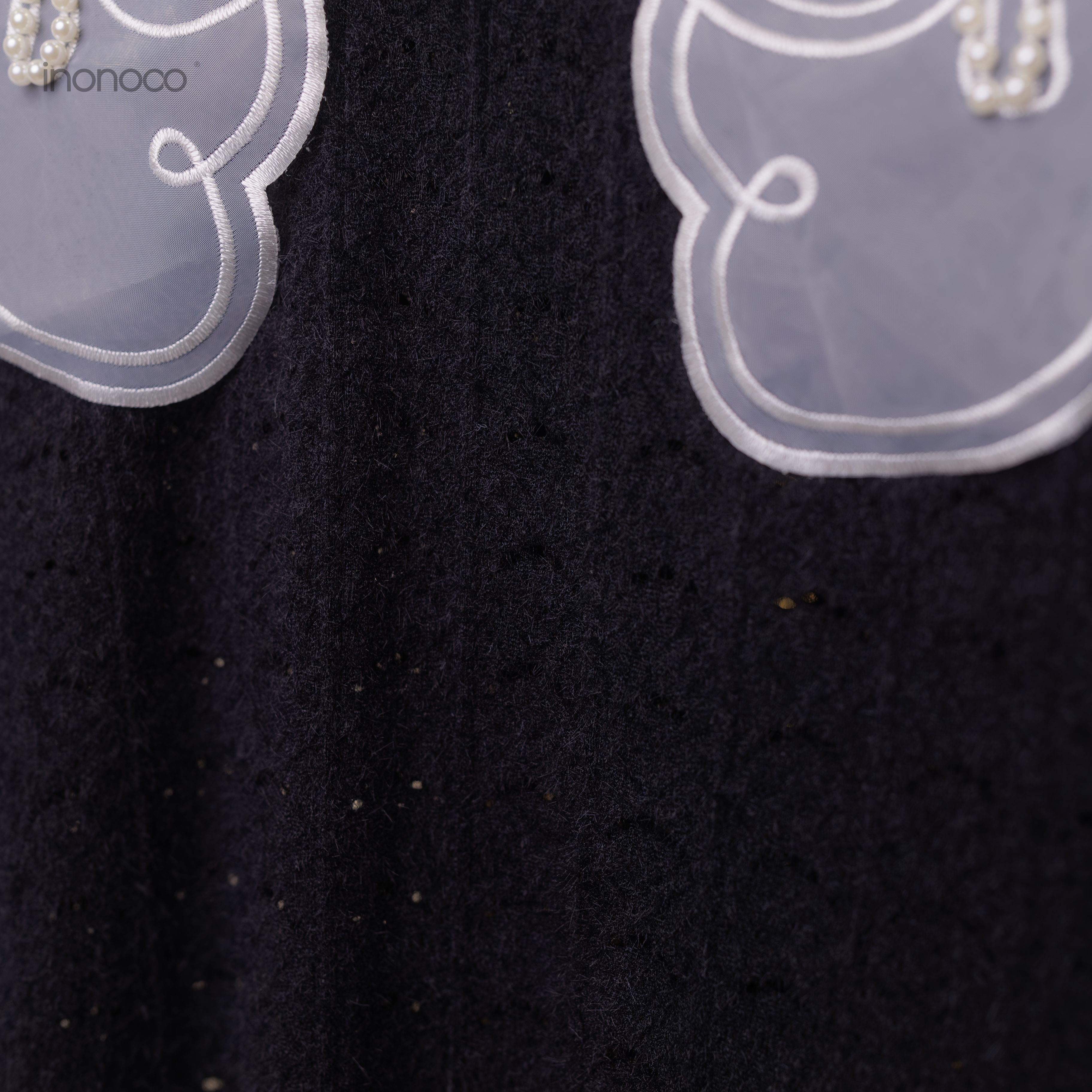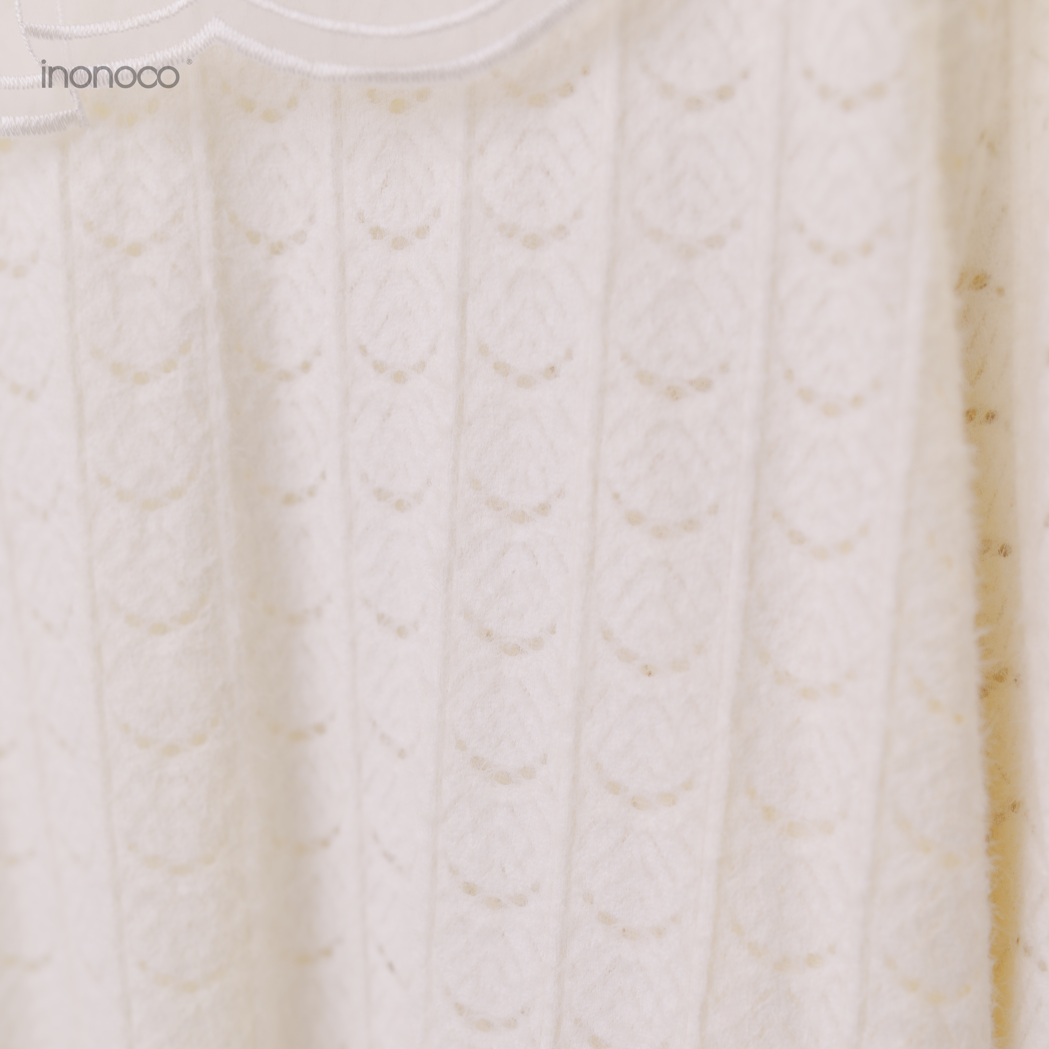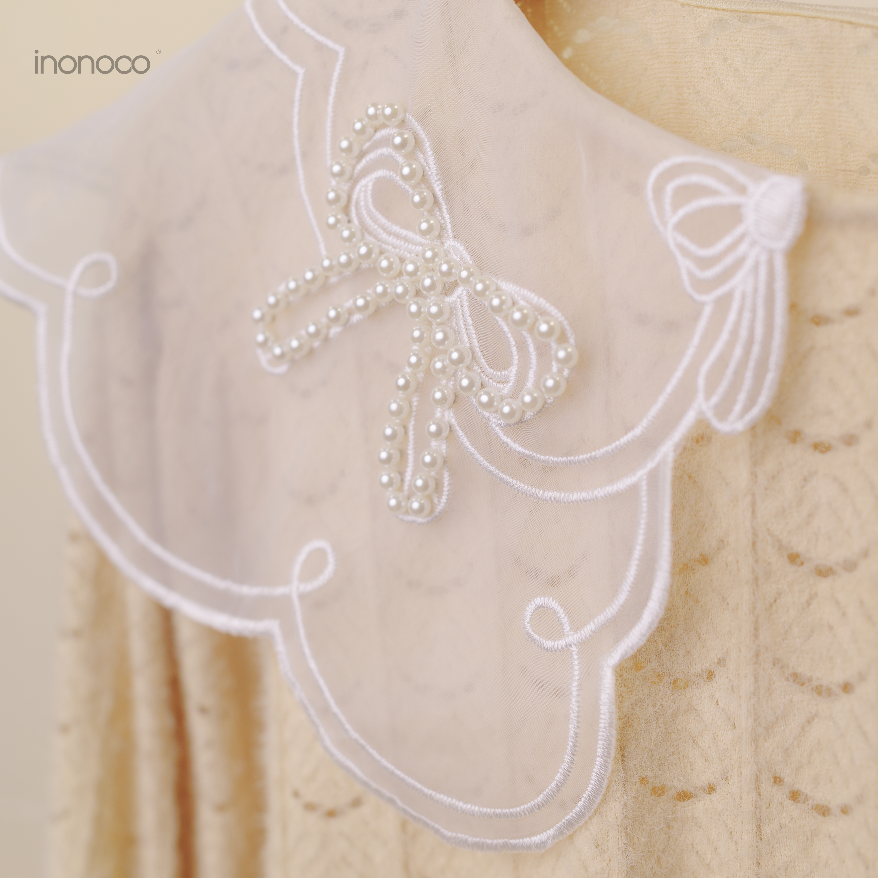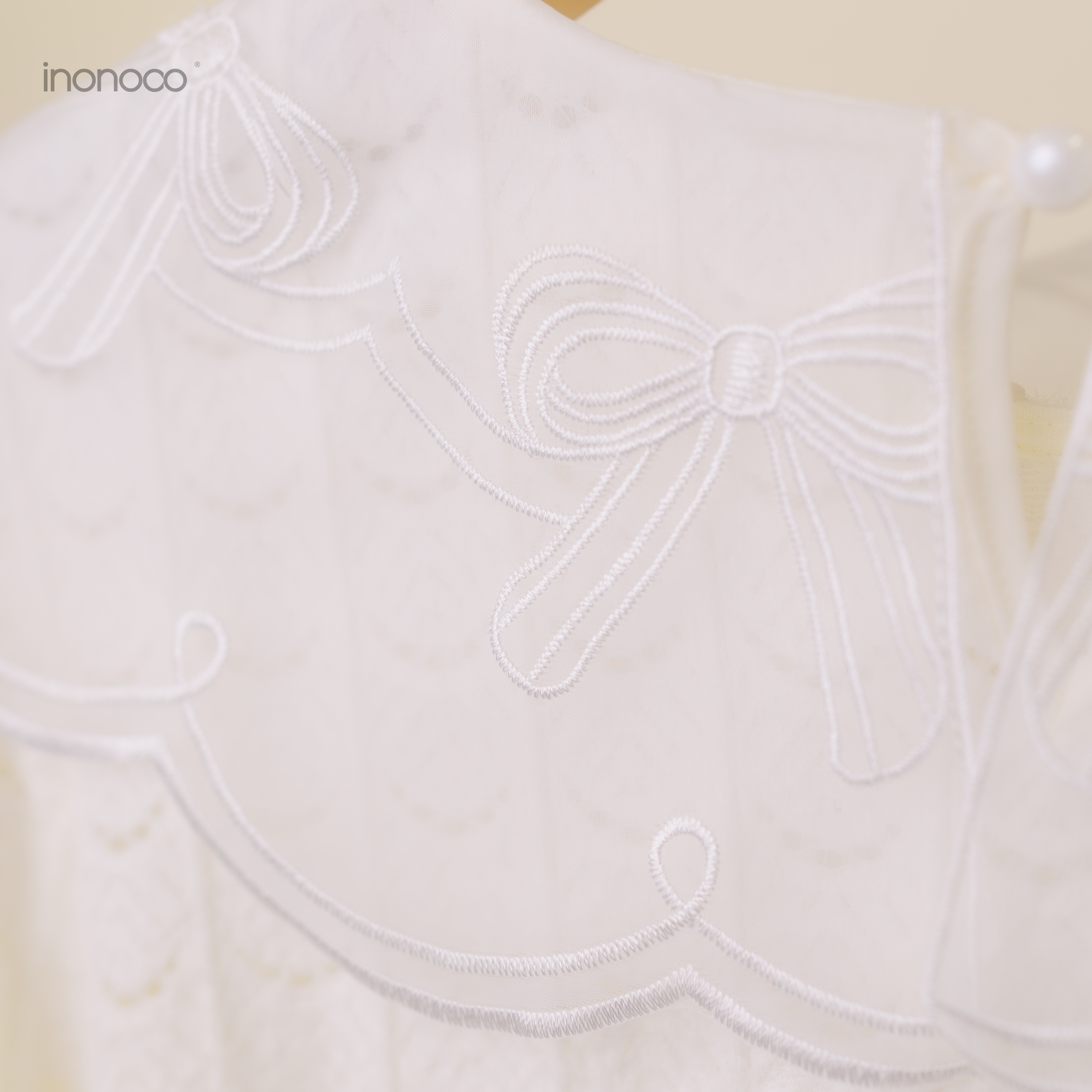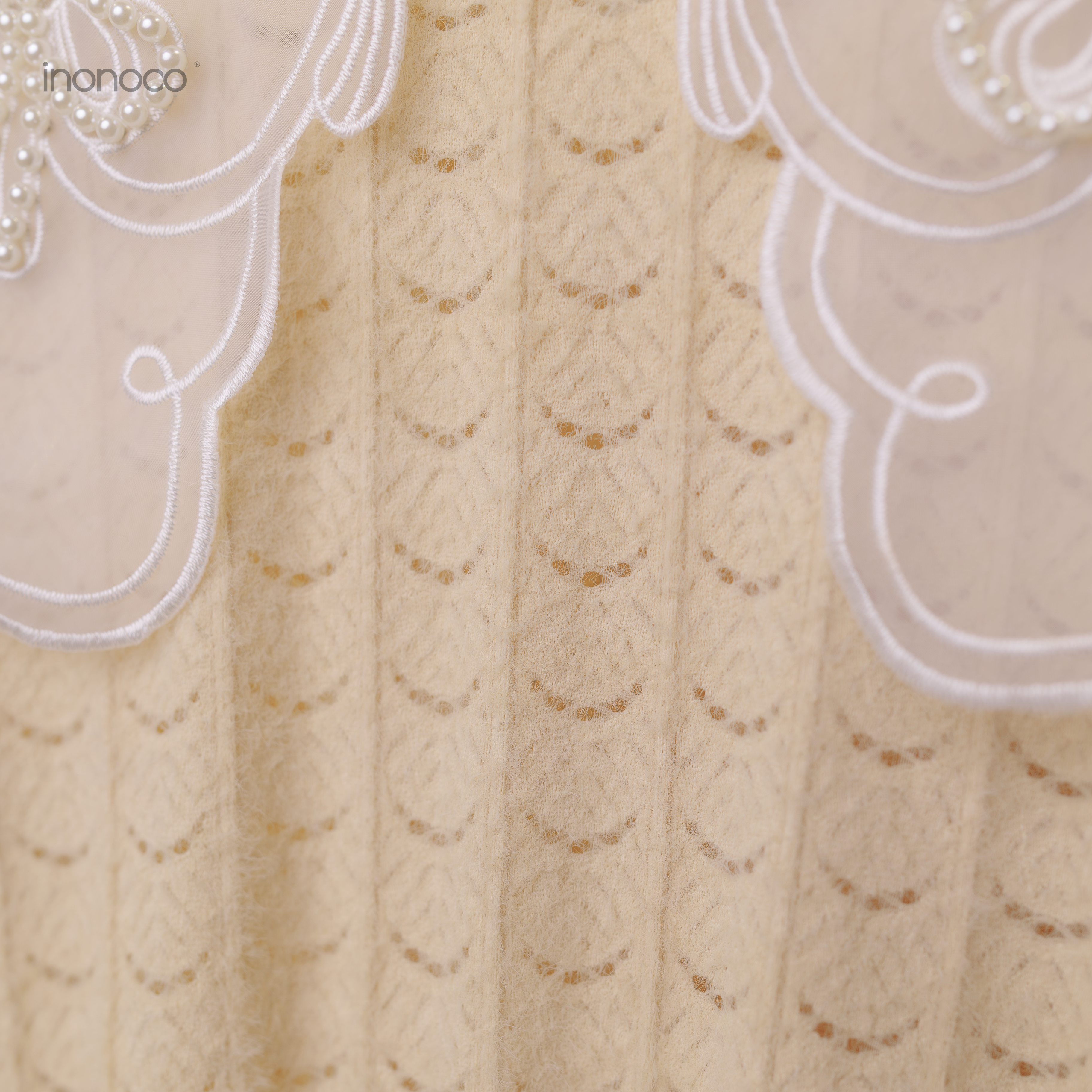 釘珠刺繡領直紋絨面蕾絲上衣 #25925